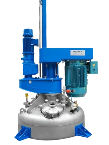 Designed as a multi-functional unit, the POLIMIX disperser has a standard mixer/disperser which can be complemented by an anchor sweep shaft. Depending on the application, a third shaft with X-blade impellers can be added.